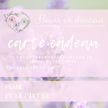 Cette carte cadeau donne accès aux élixirs floraux sur-mesure, aux ateliers Fleurs en douceur, à un coaching individuel…